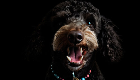 Cute purebred cocker spaniel puppy sitting, wet tongue and fur generated by artificial intelligence