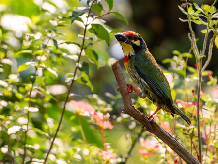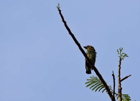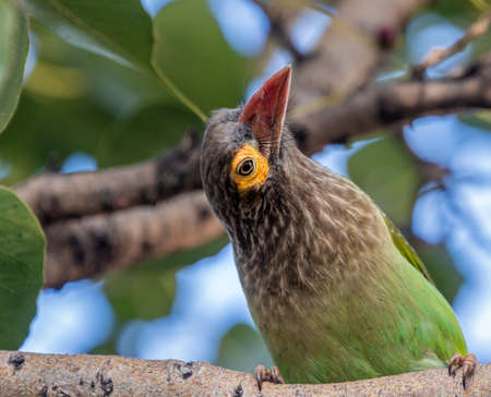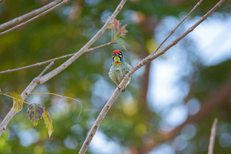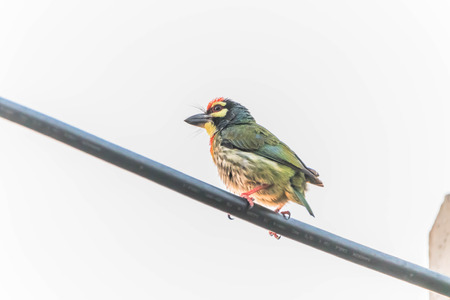 Coppersmith Barbet bird Megalaima haemacephala looking at it
