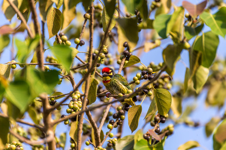 A colourful Malabar Barbet (Megalaima malabarica), is greedily stuffing itself with some wild berries.