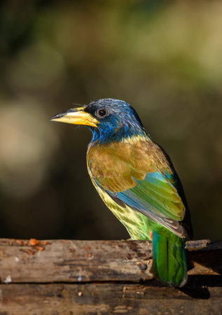 A selective focus shot of a beautiful Taiwan barbet (psilopogon nuchalis)