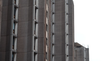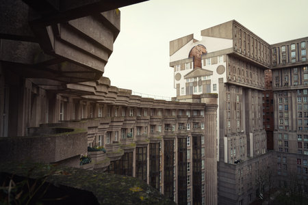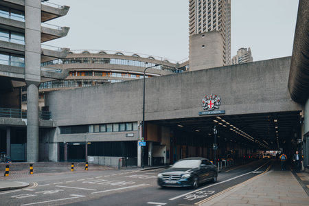 London, UK: Dec 2, 2017: The Barbican Estate is a prominent example of British brutalist architecture. It was originally built as rental housing for middle & upper-middle class professionals.
