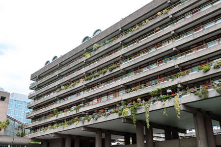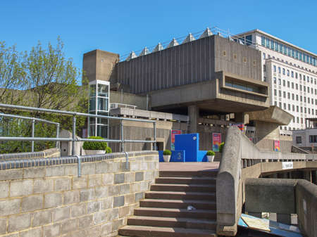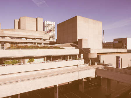 LONDON, UK - SEPTEMBER 28, 2015: The National Theatre designed by Sir Denys Lasdun is a masterpiece of new brutalist architecture vintage