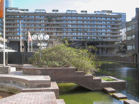 LONDON, ENGLAND, UK - MARCH 07, 2008: The Barbican Complex built in the sixties and seventies is a Grade II listed masterpiece of new brutalist architecture