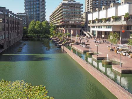 LONDON, UK - JULY 6, 2016: Barbican Estate in the City of London. The brutalist style residential estate was built in 1960s and '70s.