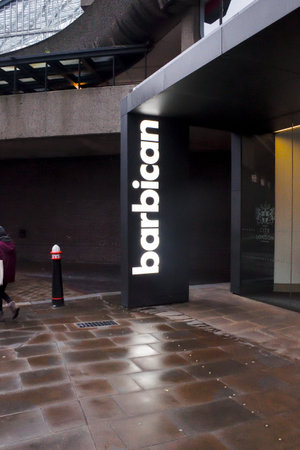 London , UK - February 14, 2011: Outside view of Barbican Center, largest performing arts centre in Europe, designed by Chamberlin, Powell and Bon, opened 1982.