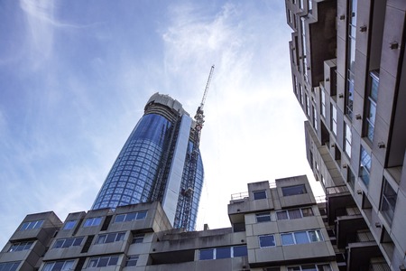 LONDON, ENGLAND - APRIL 25: One Blackfriars modern glass steel apartment block under construction. In London, England.