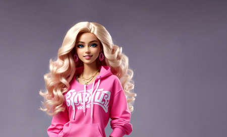 Barbie doll with loose blond hair in pink style. Blonde in style.