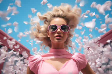 Pink-Elegance: A Young Woman Posing Under a Blue Sky