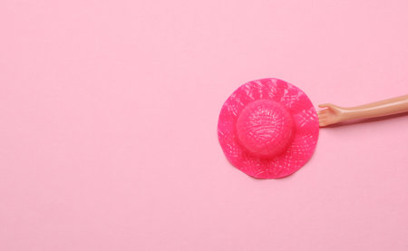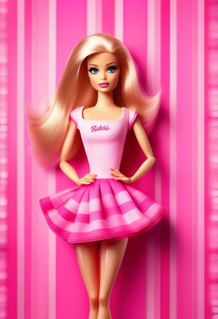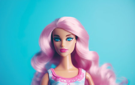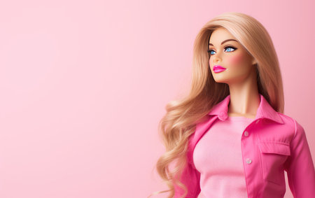 Portrait of brunette Barbie doll on dark pink background. AI, Background