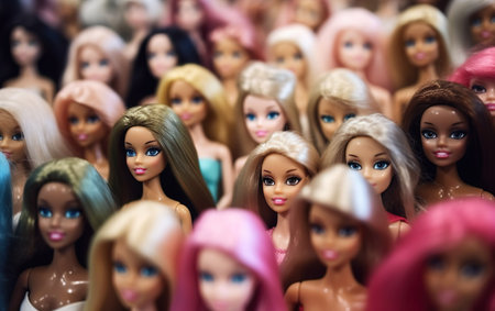 Barbie dolls closeup. Popular toys for girls. AI, Generative AI