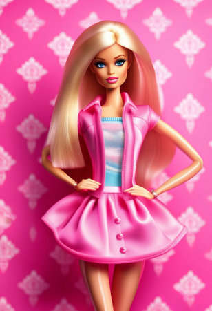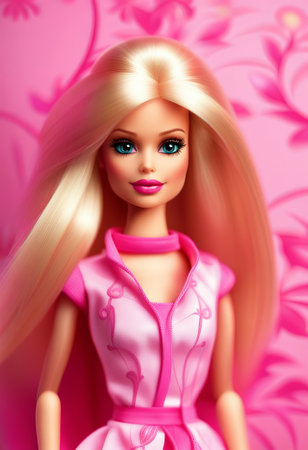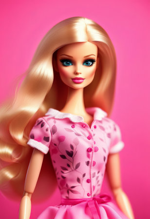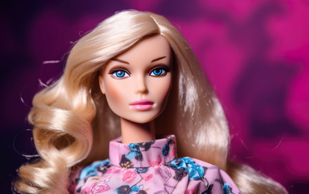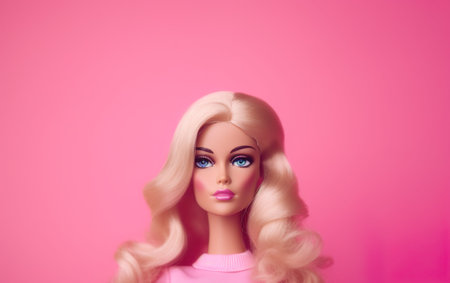 Portrait of blond Barbie doll on dark pink background. AI, Background