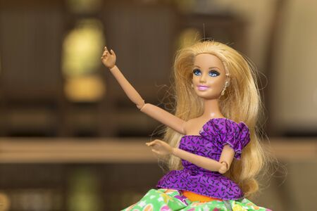 Bangkok,Thailand,Aug 10,2021-Barbie doll in gene pant s dress blur background
