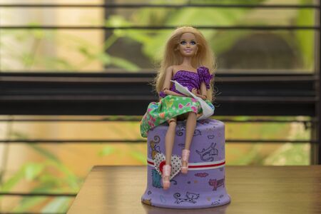 Bangkok,Thailand,Apr 14,2021-Barbie doll in costume with decoration toy