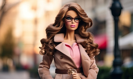 Mulhouse - France - 1 May 2021 - Portrait of barbie dolls wearing mini skirt and winter coat walking in the street