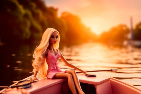 Barbie doll, sailing in a boat on the lake