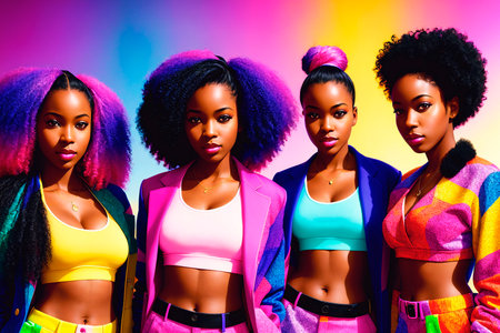 Group of african american women in colorful sportswear. multiethnic group.