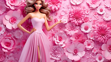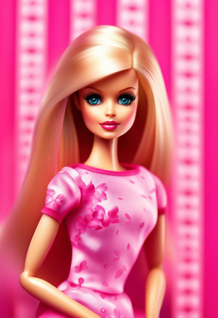 Portrait of blond Barbie doll against pink background. AI, Background