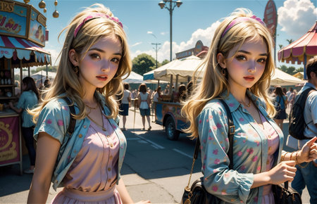 Beautiful and attractive girl at the festival site. Attractive girl posing at the Carnival in the 90s