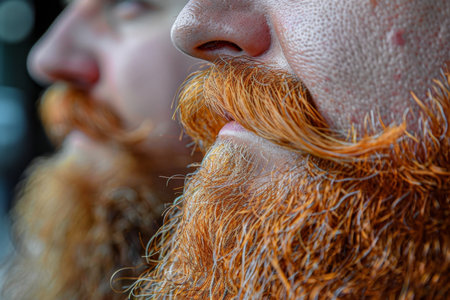 Close up of man s stylish mustache and beard, highlighting modern grooming techniques