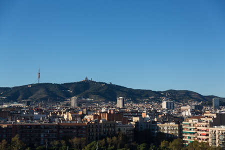 The view of the city from view point. T on a summer day. Barcelona, Spain.