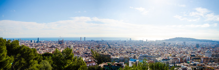 Panoramic view of Barcelona from Park Guell in a summer evening in Spain