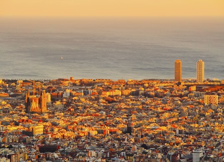 Barcelona Cityscape during sunset - view from Tibidabo Mountain, Catalonia, Spain