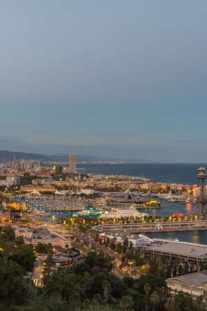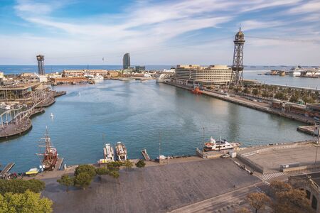 Barcelona Spain, high angle view city skyline at Barcelona beach and port