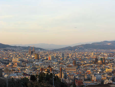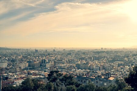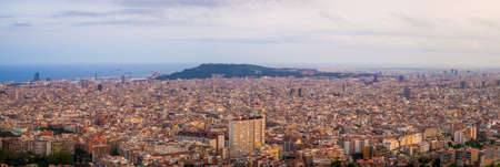Panoramic view of Barcelona in the sunset time. Barcelona in the summer evening. Spain.