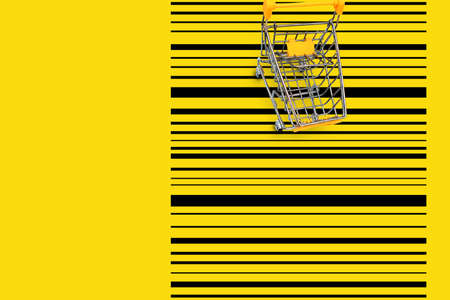 Business and Shopping Concept : Yellow shopping cart or trolley rally on barcode.