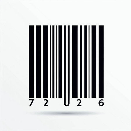 A simple dark barcode with vertical lines and stripes is displayed centrally on a light gray background.