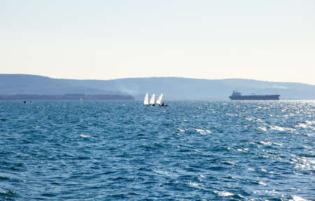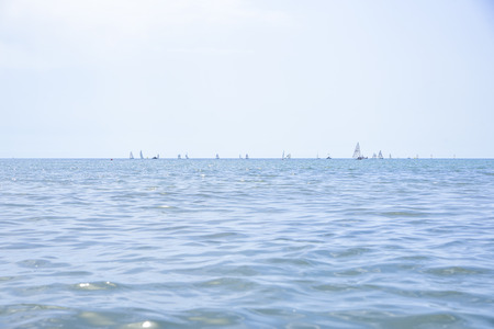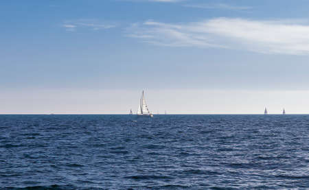 Sailing boats on the sea. Yacht with white sails in the sea in hot weather