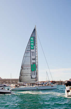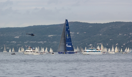 TRIESTE, ITALY - 14 OCTOBER 2012: Maxi Jena boat, second place of the 44° Barcolana regatta in Trieste sea, northern part of the Adriatic Sea. About 2000 boats and thousands of sailors from all over the world took part in the race.