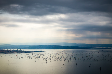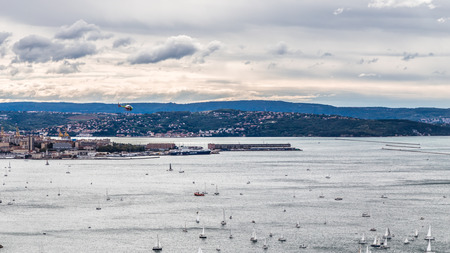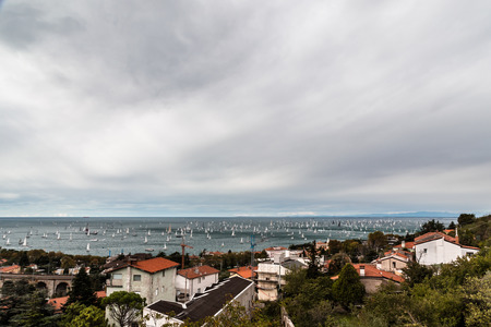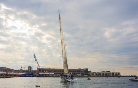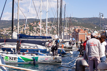 Trieste, Italy - October, 09: The sailboats are docked in the rive pier during 53 ° Barcolana regatta in the Trieste sea on October 09, 2021