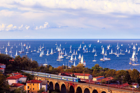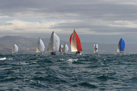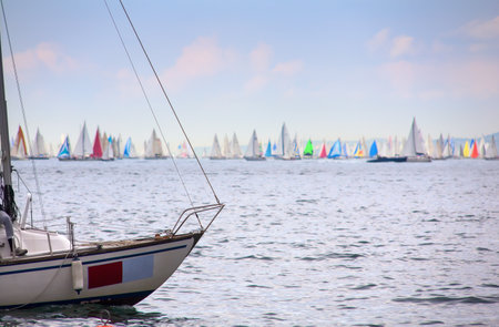 Racing sailboats compete during Sailing regatta in Mediterranean