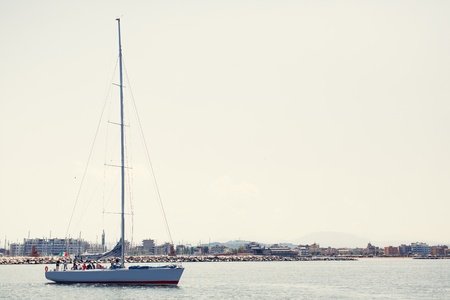 Racing yacht in the Mediterranean sea on blue and cloudy sky