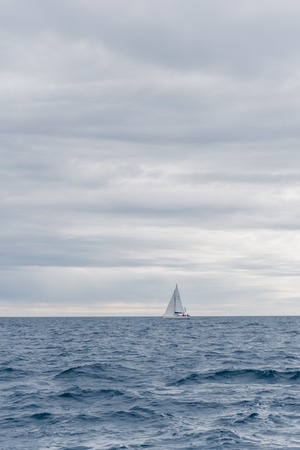 White Sailing Boat Sailing on the Horizon, Open Blue sea