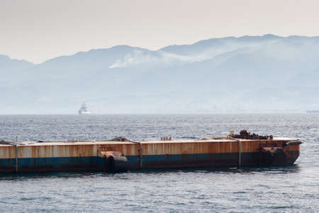 Barge the on a construction vessel in the building pipes and metal structures cargo passage of ships and barges