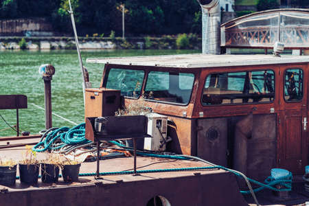 Old and rusty ship in the harbor of Siofok in the lake Balaton