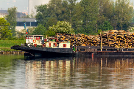 loaded on a boat on the danube in austria with wood
