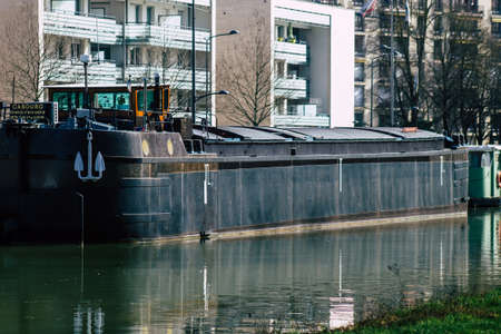 Reims France February 24, 2021 View of boat moored in the city of Reims during the coronavirus outbreak hitting France