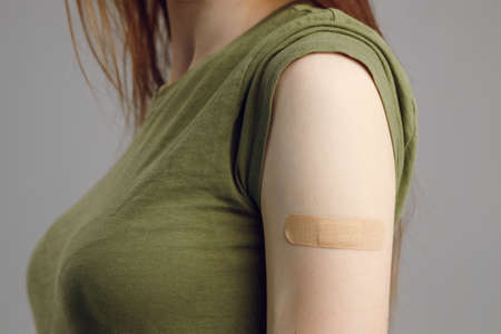 a plaster on the arm after vaccination against infection.
