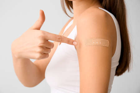 pretty woman with adhesive plaster on her arm