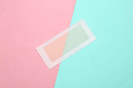 Depilatory strip on a blue-pink background. body care concept
