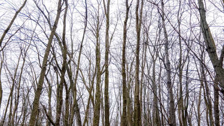 Panorama of forest in winter. Panorama of trees in the forest in winter when the trees are free of leaves.