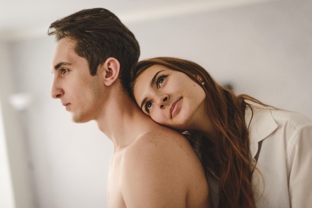 Image of man hugging naked girl in shadows