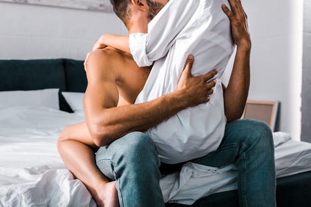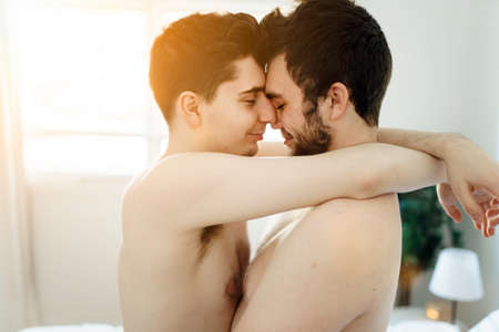 homosexual couple under a bed at home