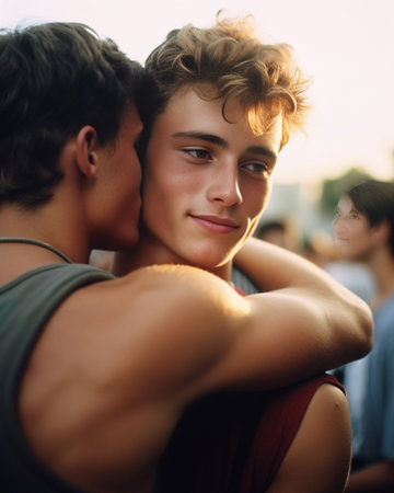 Young man being consoled by friends : Generative AI