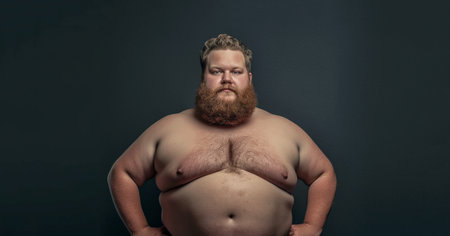 Portrait of confident happy caucasian middle aged man overweight, self-love concept body-positivity, weight loss, body and health care, self loving plus size men beauty