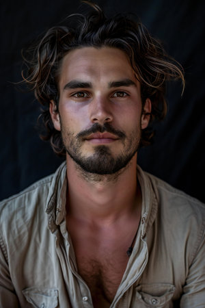 Portrait of a handsome young man with a beard and mustache.