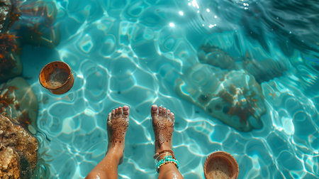 Womans Feet With Henna Tattoos Dip in Turquoise Water on Sunny Day